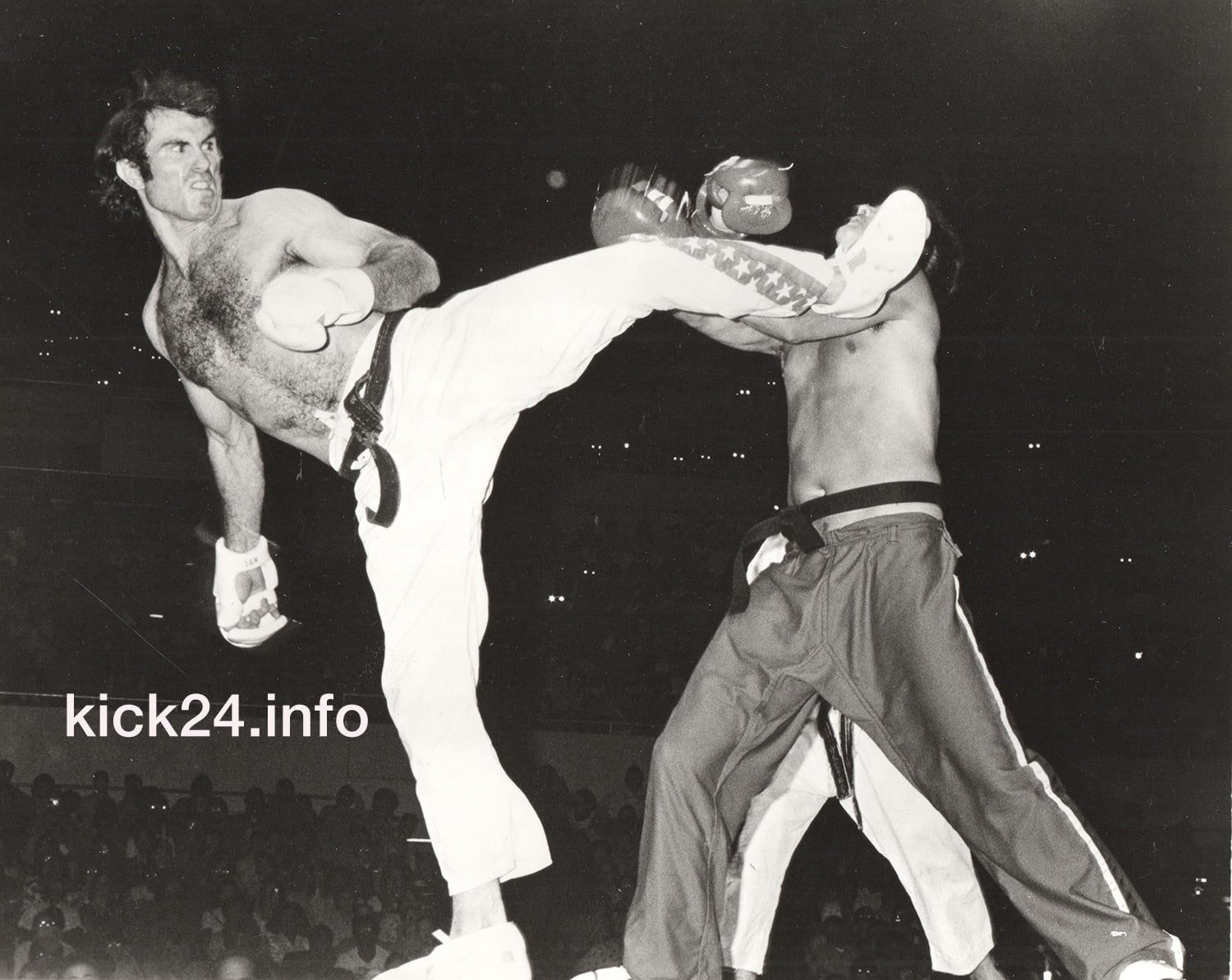 Es gibt viele Quellen, aus denen sich der moderne Kickboxsport ableiten läßt. Darüber hinaus gibt es noch viel mehr Personen und Persönlichkeiten, die für sich in Anspruch nehmen, Begründer dieses neuen attraktiven und spannenden Kampfsports zu sein. Aber es gibt nur eine Geburtsstunde dieses Sports, der 14. September 1974! Ort: die Sportarena in Los Angeles, 15.000 begeisterte Zuschauer. Unter Ihnen weltbekannte Schauspieler wie „Kojak“-Darsteller Telly Savallas, der als Kommentator der Veranstaltung fungierte, Chuck Norris, Linda Lee, Priscilla Presley und andere. Anlaß: die erste Profi-Weltmeisterschaft im „Fullcontact-Karate“.